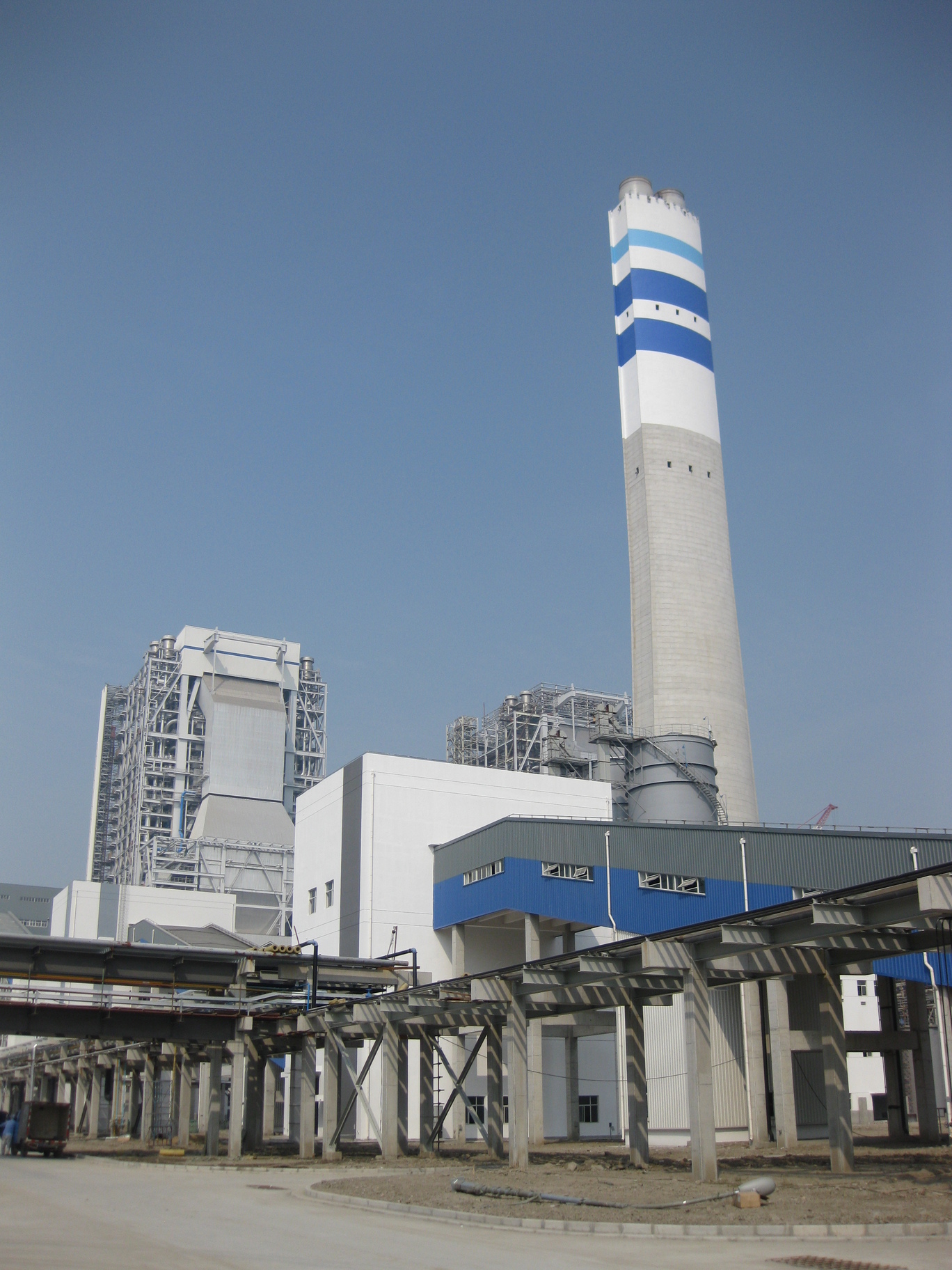 該工程是國內百萬千瓦機組工程首座異型煙囪,底部呈圓形,向上逐漸收攏呈橢圓形。在工程建設中,上海電建研發的異型煙囪平面轉動裝置獲得了國家新型實用專利。該煙囪已成為漕涇電廠的標志性建筑。
